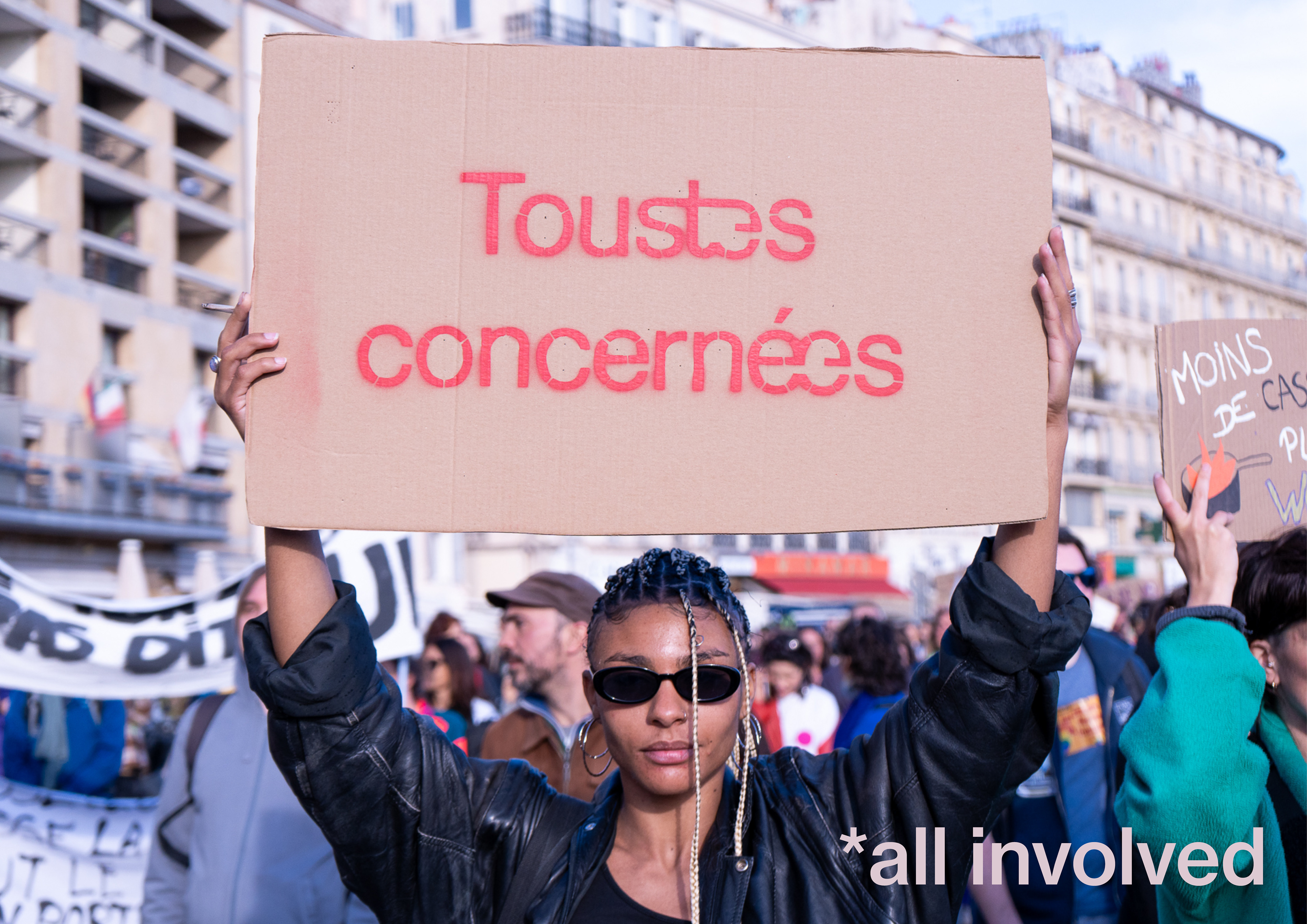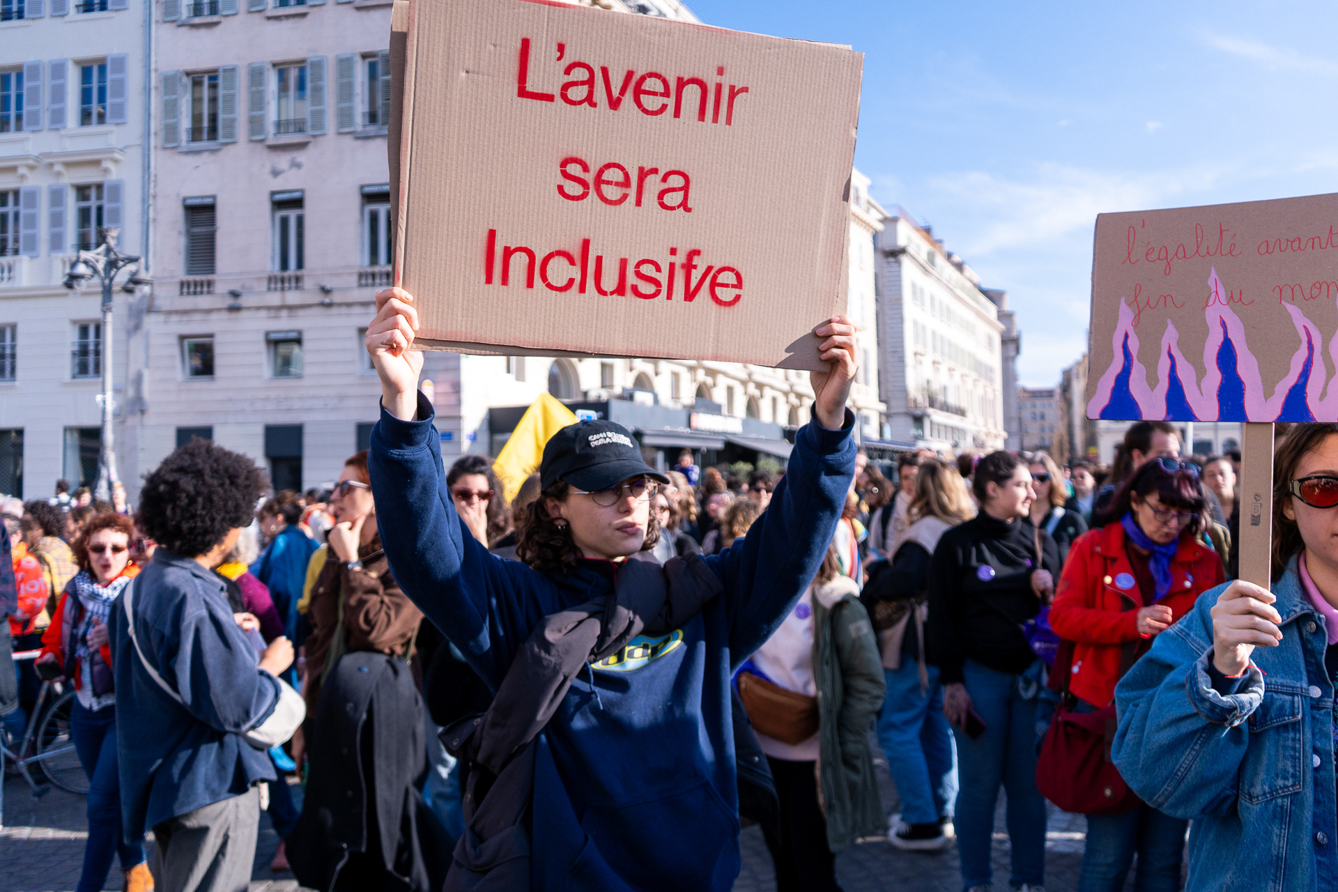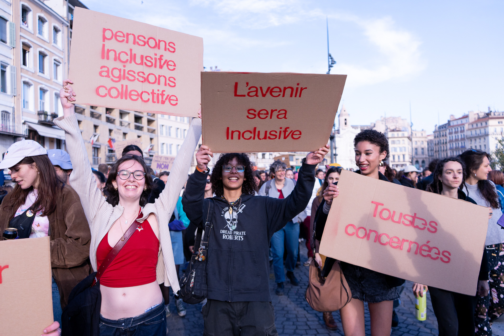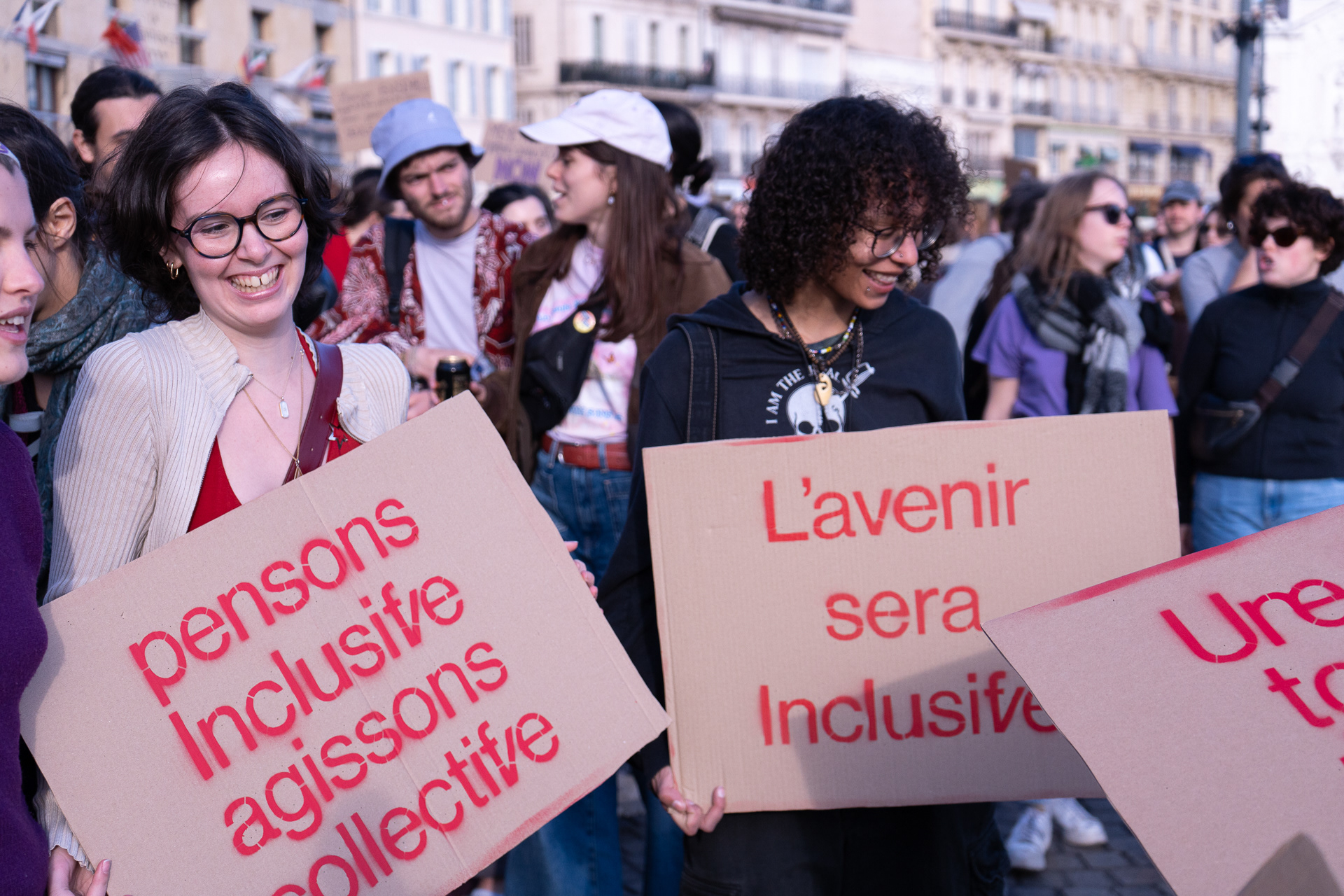 Pancartes réalisées avec notre typographie, puis distribuées à des manifestant·es lors de la Journée internationale des droits des femmes.