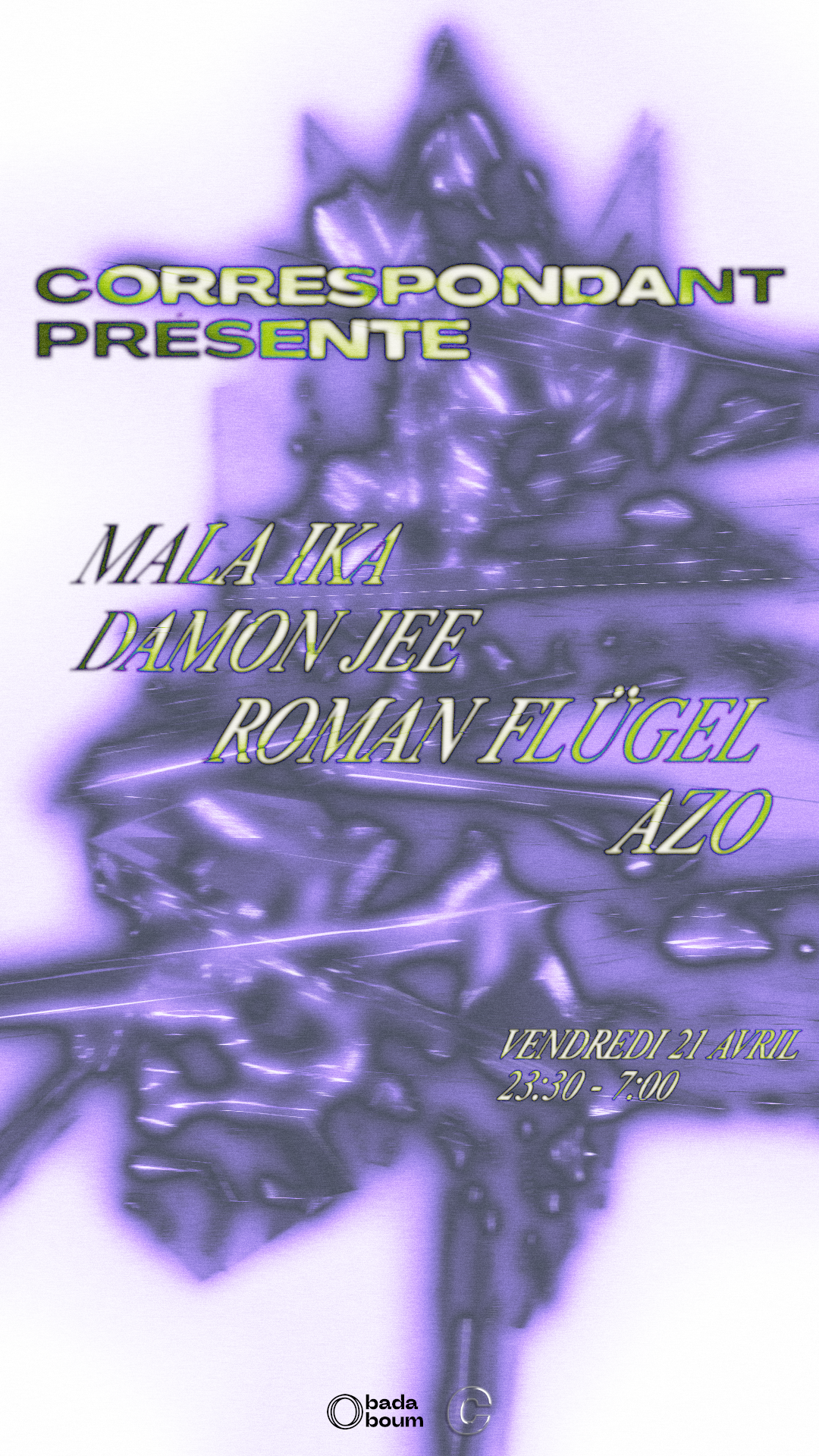 J'ai ensuite travaillé une typographie inclinée, avec un léger effet de fou directionnel, pour incarner la rapidité des bpm de ces musiques, et les mouvements vifs qu'elles provoquent.